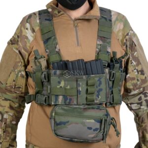 Cuenta con clips para enganchar fácilmente paneles delanteros preconfigurados o chest rigs de Delta Tactics. Incorpora un bolsillo con cremallera en la parte superior de la placa delantera y nos evita pérdidas accidentales y es muchísimo más silencioso que el velcro. La placa trasera está equipada con sistema molle para poder configurarla a gusto de cada jugador.