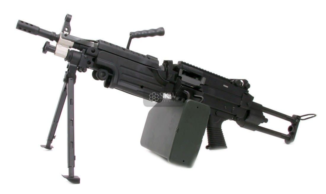 AEG M249 PARA A&K: fusil de asalto robusto y versátil, perfecto para cobertura y disparo constante.