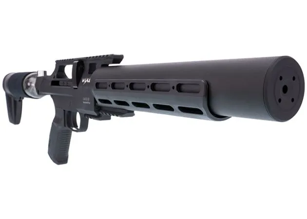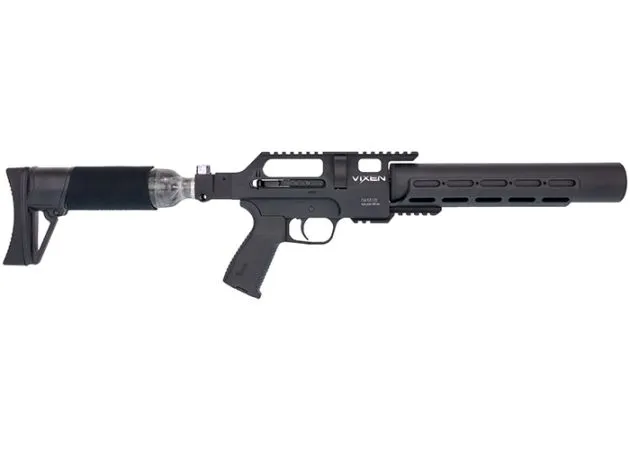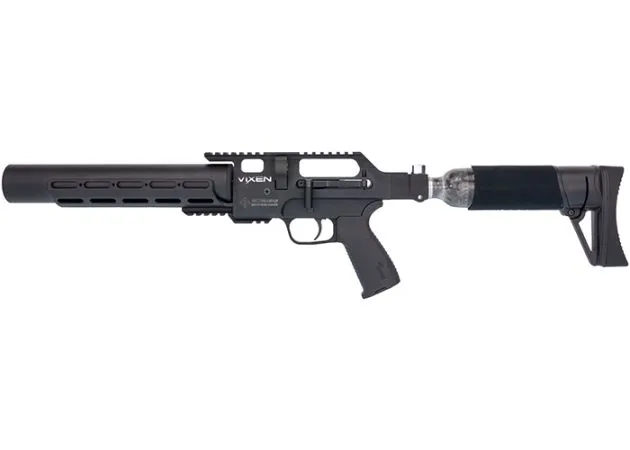 El AGN Technology Vixen es un rifle de aire comprimido PCP con una apariencia muy táctica donde el diseño se mantiene bellamente minimalista. Por ejemplo: el depósito de aire (botella) es una parte estructural de la culata y un riel de accesorios escalonado Weaver/Picatinny sigue estrictamente los contornos de la acción y el cañón.