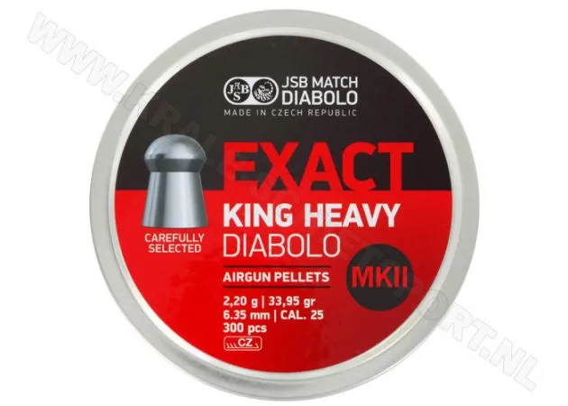 JSB Exact King 6,35 mm está cuidadosamente diseñado, producido con precisión y seleccionado a mano con control de calidad, por lo que estos balines para armas de aire comprimido son muy precisos.