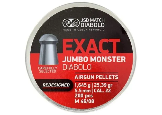 Los balines para carabinas de aire comprimido JSB Monster Rediseñados de 5,52 mm y 25,39 gramos tienen un peso elegido para adaptarse a las carabinas de aire comprimido más potentes disponibles actualmente en el mercado. Es un Balín de pistola de aire comprimido muy pesado que es incluso estable a niveles de potencia de más de 50 julios, pero también se adapta a rifles de aire comprimido de más de 70 julios. Este Balín es muy preciso y muy estable en cualquier condición climática debido a su peso y forma.