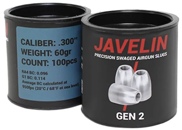 Estas balas de pistola de aire comprimido Javelin Gen 2 de 7,62 mm y 60 granos (.300) cuentan con una punta hueca. Esa punta hueca garantiza que la bala de plomo se expanda rápidamente tras el impacto, por lo que proporcionan una máxima transferencia de potencia. Están hechos de plomo que es relativamente blando, lo que les permite expandirse tan rápidamente como lo hacen. También juega un papel en el proceso de fabricación. Estos trozos no están fundidos, sino estampados en frío con tolerancias extremadamente estrictas. Esto significa que todas y cada una de las balas son idénticas a las demás, por lo que el tirador tiene la seguridad de obtener resultados consistentes y confiables. Las balas de pistola de aire comprimido Javelin Gen 2 de 7,62 mm y 60 granos (.300) tienen una forma aerodinámica que permite dispararlas rectas y lejos. El peso de 60 granos también contribuye a su trayectoria recta. Estas babosas se empaquetan por 100 unidades