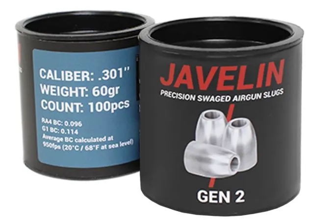 Estas balas de pistola de aire comprimido Javelin Gen 2 de 7,62 mm y 60 gramos (.301) cuentan con una punta hueca. Esa punta hueca garantiza que la bala de plomo se expanda rápidamente tras el impacto, por lo que proporcionan una máxima transferencia de potencia. Están hechos de plomo que es relativamente blando, lo que les permite expandirse tan rápidamente como lo hacen. También juega un papel en el proceso de fabricación. Estos trozos no están fundidos, sino estampados en frío con tolerancias extremadamente estrictas. Esto significa que todas y cada una de las balas son idénticas a las demás, por lo que el tirador tiene la seguridad de obtener resultados consistentes y confiables. Las balas de pistola de aire comprimido Javelin Gen 2 de 7,62 mm y 60 gramos (.301) tienen una forma aerodinámica que permite dispararlas rectas y lejos. El peso de 60 granos también contribuye a su trayectoria recta. Estas babosas se empaquetan por 100 unidades.