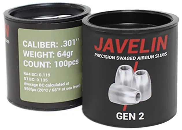 Estas balas de pistola de aire comprimido Javelin Gen 2 de 7,62 mm y 64 gramos (.301) cuentan con una punta hueca. Esa punta hueca garantiza que la bala de plomo se expanda rápidamente tras el impacto, por lo que proporcionan una máxima transferencia de potencia. Están hechos de plomo que es relativamente blando, lo que les permite expandirse tan rápidamente como lo hacen. También juega un papel en el proceso de fabricación. Estos trozos no están fundidos, sino estampados en frío con tolerancias extremadamente estrictas. Esto significa que todas y cada una de las balas son idénticas a las demás, por lo que el tirador tiene la seguridad de obtener resultados consistentes y confiables. Las balas de pistola de aire comprimido Javelin Gen 2 de 7,62 mm y 64 gramos (.301) tienen una forma aerodinámica que permite dispararlas rectas y lejos. El peso de 64 granos también contribuye a su trayectoria recta. Estas babosas se empaquetan por 100 unidades.