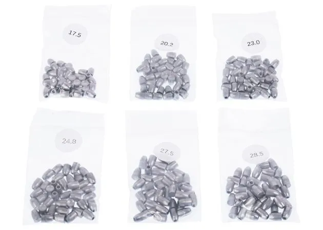 Las de este paquete de muestras Nielsen de 5,5 mm .216 17,5-28,5 granos están estampadas con plomo blando. Al estamparlos y no forjarlos, se logra una consistencia mucho mejor. No solo la consistencia del material es mejor, sino que las en sí también son extremadamente uniformes en forma y tamaño, lo que genera un alto nivel de precisión.