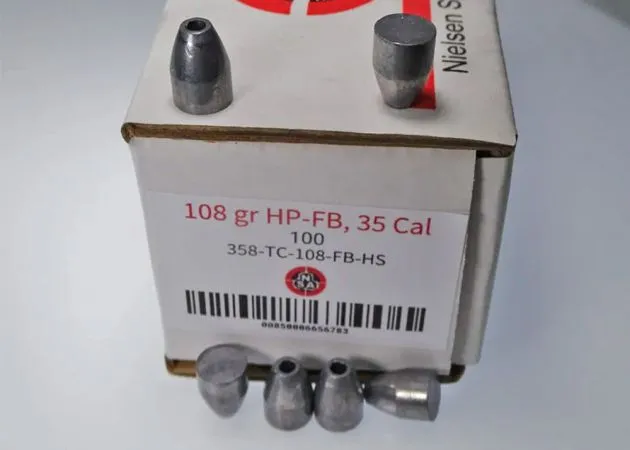 Las balas de aire comprimido Nielsen HPFB de 9 mm y 108 granos (.357) tienen un coeficiente balístico de 0,18 y se empaquetan por cada 100 piezas.