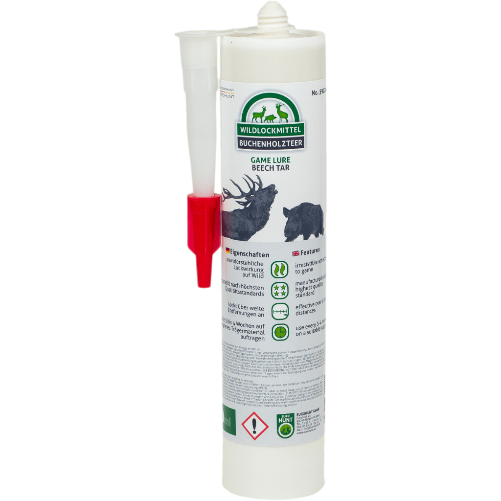 Atrayente de resina da haya 100% puro y natural. Tubo de 310g de muy fácil aplicación y evita el mancharse. Especial para jabalí, ciervo, corzo, cabra hispánica, arruí.