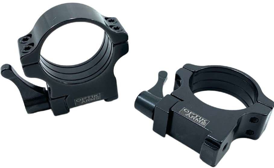 La gama de anillas desmontables (QR) de OPTIK ARMS se desmontan automáticamente en 3 segundos y se colocan y desmontan tantas veces como se quiera, quedando siempre el visor a tiro.