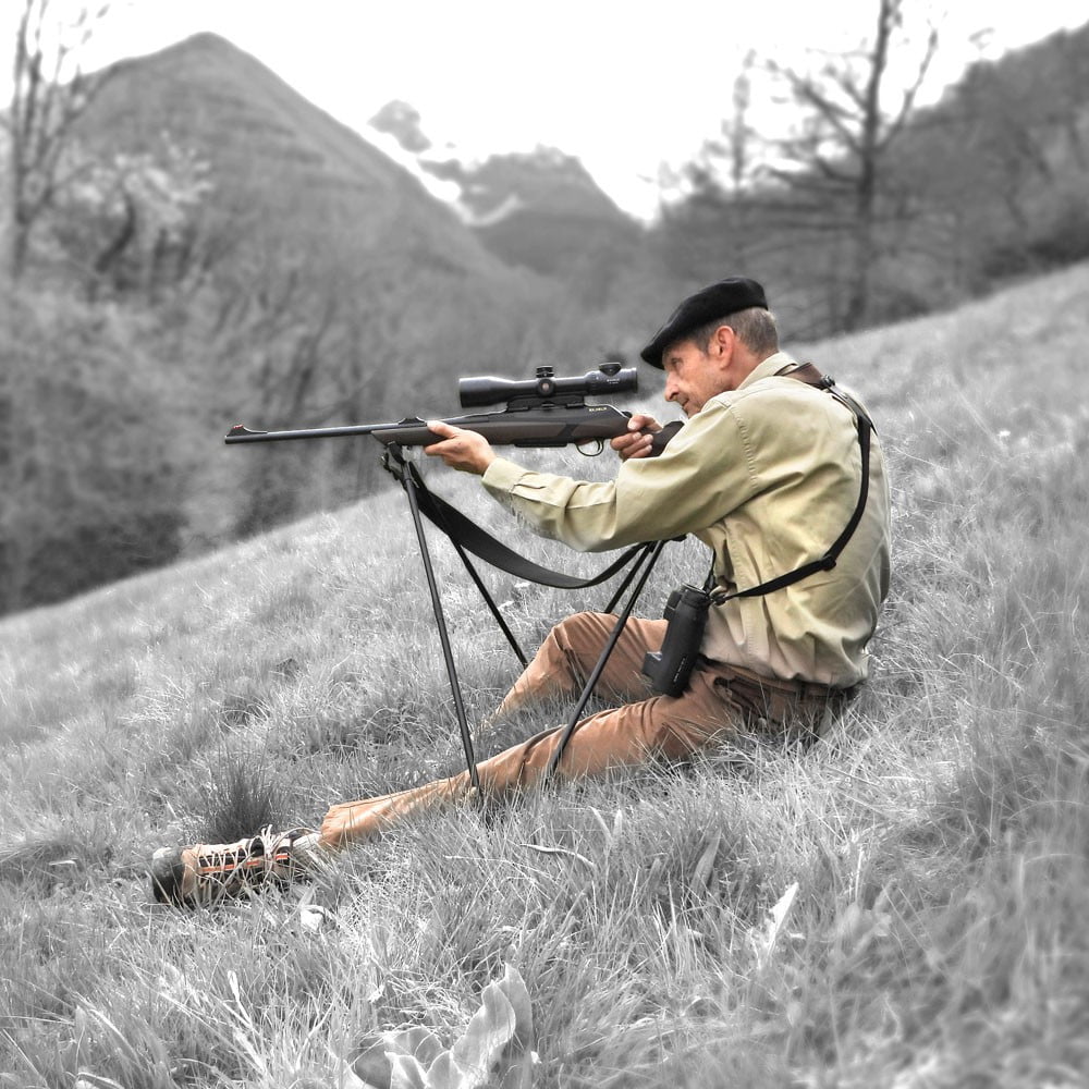 El Sit Stick es un bastón para usar sentado, recostado o de rodillas de construcción ligera y resistente, con una estabilidad excepcional para los tiros a larga distancia.