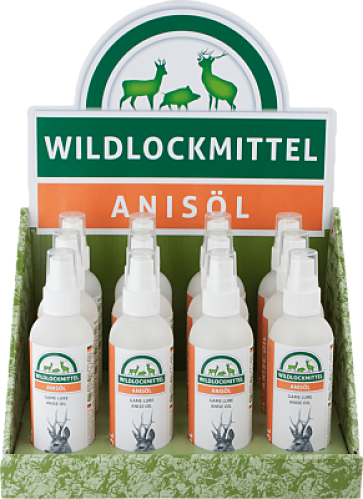 Nuestros atrayentes aromáticos probados y comprobados tienen un olor muy intenso y, por lo tanto, se perciben a largas distancias. El olor irresistible atrae a una amplia variedad de especies de caza. Nuestros atrayentes están listos para usar en cualquier época del año y se pueden llevar cómodamente en el bolsillo cuando ingrese a la zona. Gracias al práctico atomizador, los atrayentes aromáticos se pueden aplicar rápida y fácilmente a un material de soporte adecuado.El aceite de anís probado con su aroma irresistible atrae de manera confiable a casi todas las especies de caza a largas distancias.