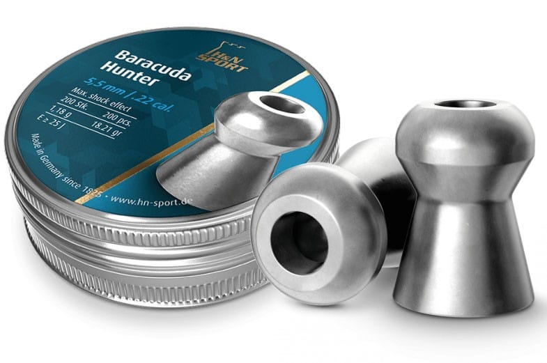Balín de caza pesado, extraordinariamente preciso para distancias largas. Modelo Baracuda perfeccionado con las mejores propiedades aerodinámicas para un máximo poder de perforación, alta profundidad de penetración y deformación controlada de la bala. Agrupaciones pequeñas. Emplomado muy bajo y agrupaciones homogéneas gracias a la aleación especial y engrase. Liso con punta hueca profunda.