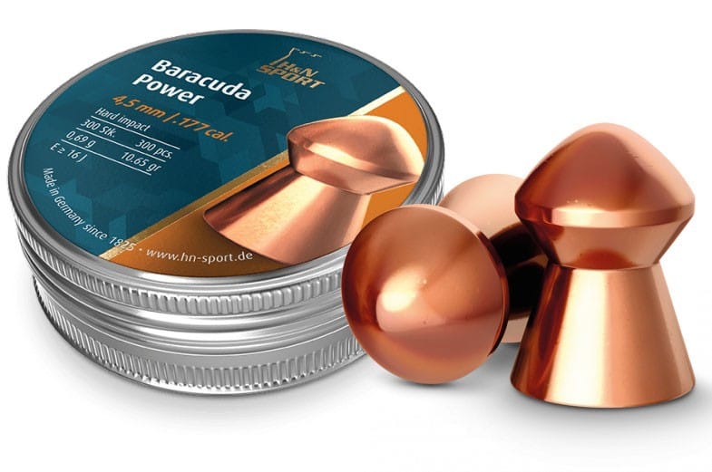 Balín pesado, de precisión excepcional para distancias largas. Sin emplomado, conducción mejorada en el cañón, sin contacto del plomo gracias al recubrimiento especial de cobre (dureza 20 % superior frente a balines de plomo comparables). Diseño aerodinámico magnífico para un alto poder de perforación y profundidad. Baja deformación del Balín. Agrupaciones pequeñas. Liso.