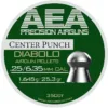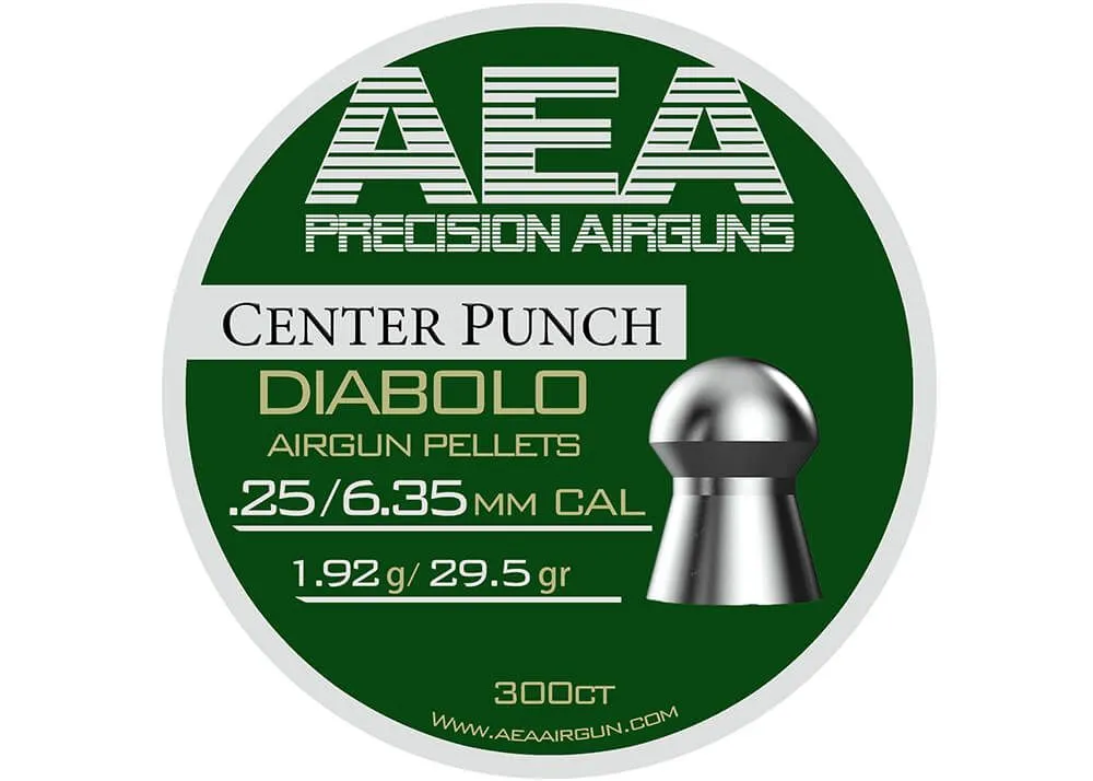Los balines de aire comprimido AEA Center Punch 6,35 mm de 29,63 granos tienen una trayectoria bastante plana, lo que los hace menos susceptibles a las influencias del viento. Esto se debe a la cabeza de la cúpula de los perdigones, que tiene una forma muy aerodinámica. Los balines de aire comprimido AEA Center Punch de 6,35 mm y 29,63 granos se empaquetan por 300 perdigones.