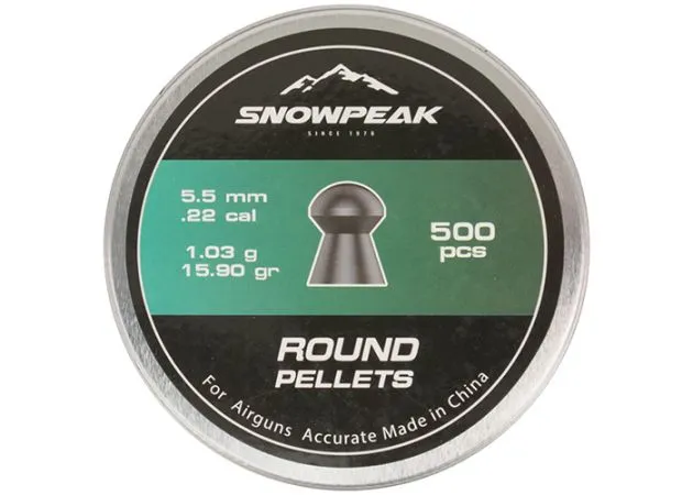 Snowpeak envía estos balines para armas de aire comprimido Accurate Heavy de 5,5 mm y 15,9 granos en latas por 500 piezas.