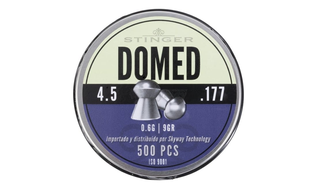 Balines STINGER Domed 4.5 mm, 500 uds. Perfectos para tiro al blanco y entrenamiento, ofrecen gran precisión y estabilidad en el vuelo. Fabricados en plomo, son ideales para rifles y pistolas de aire comprimido.