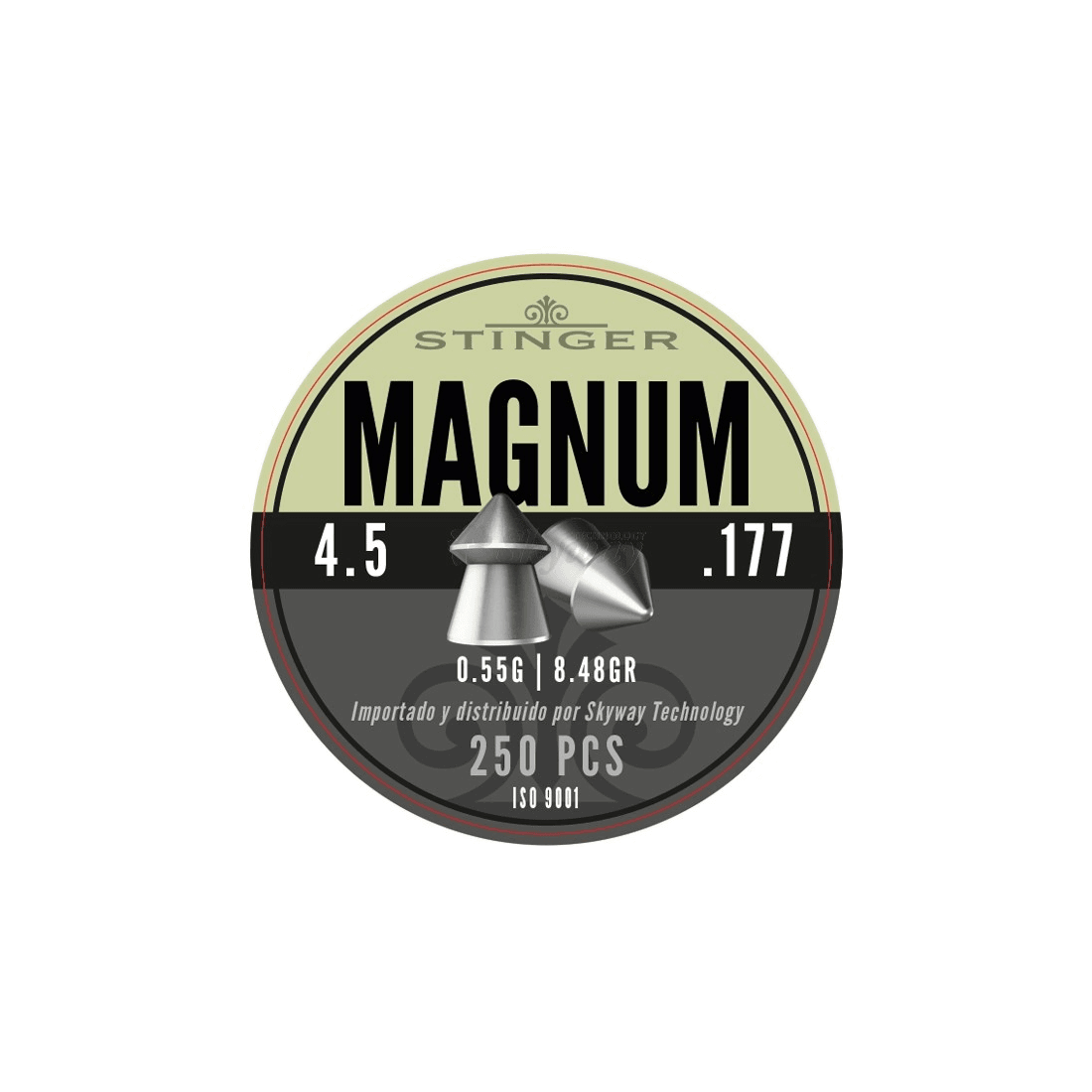 Balines STINGER Magnum 4.5 mm, 250 uds. Precisión y alto impacto para armas de aire comprimido. Ideal para tiradores exigentes que buscan máxima eficacia en cada disparo.