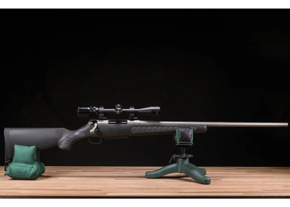 La mejor manera de determinar la precisión de su rifle y sus municiones es dispararles desde un banco sólido, con un soporte de tiro de calidad.