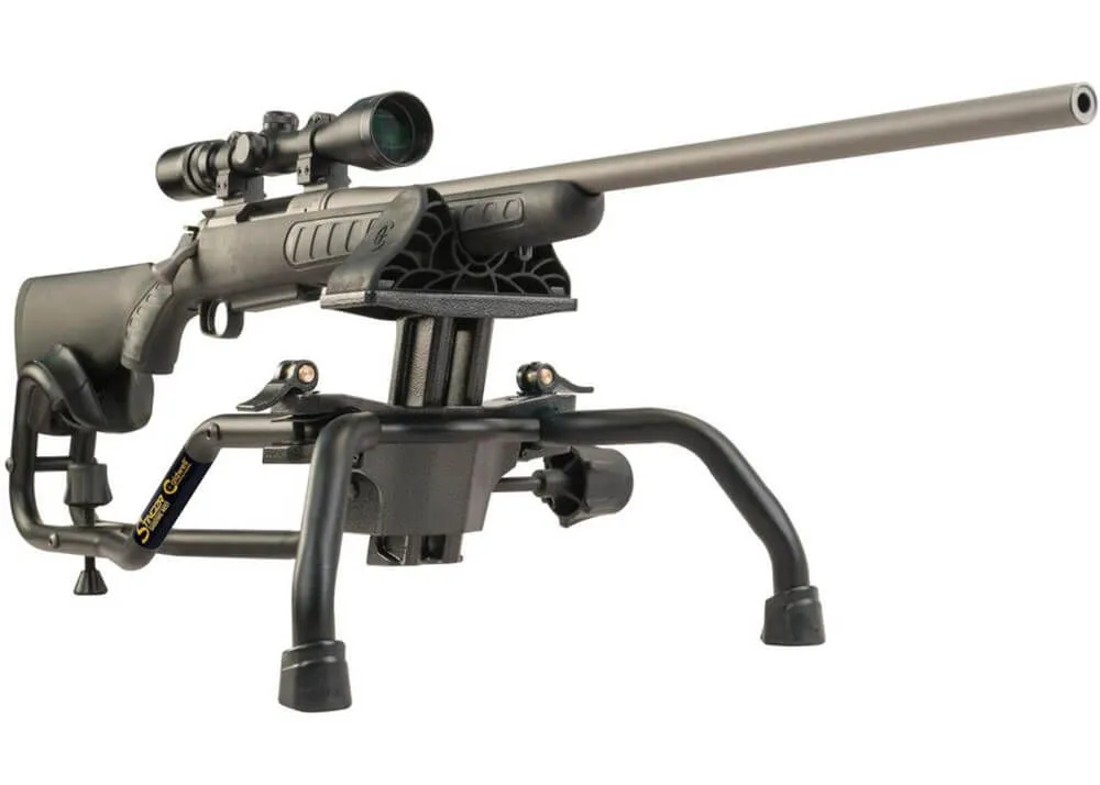 El soporte de tiro Stinger de Caldwell combina un diseño atractivo, la máxima funcionalidad para el usuario y una estabilidad sólida en un soporte de tiro a un precio muy atractivo. En primer lugar, está el innovador sistema de elevación frontal que hace posible un ajuste de elevación rápido con una sola mano mediante una perilla de ajuste de altura accionada por resorte.
