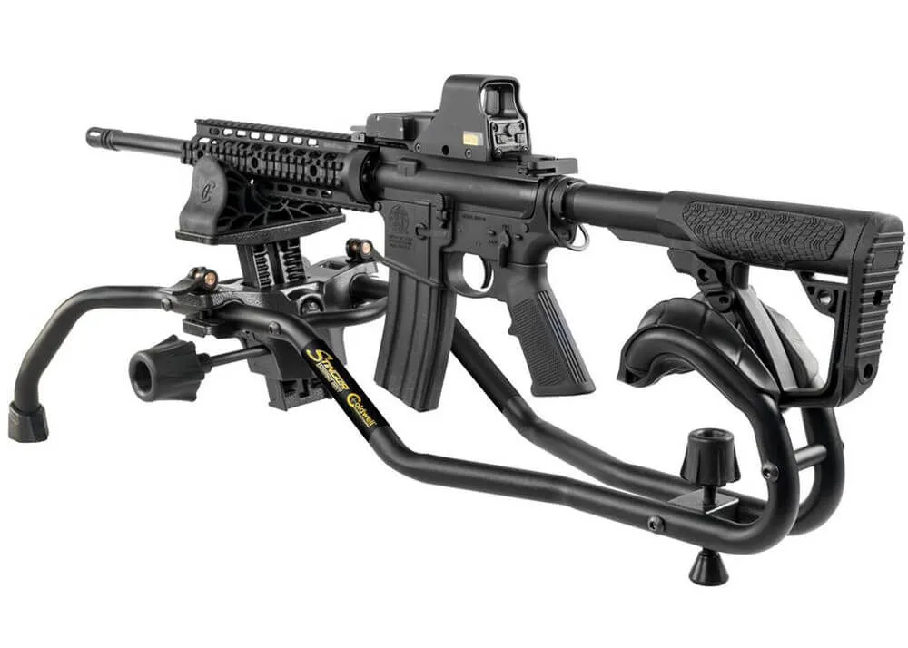 Luego está el marco de metal resistente y los cierres de leva rápidos que permiten que el respaldo delantero del Stinger se deslice fácilmente hacia adelante o hacia atrás y luego se bloquee en su lugar cuando se haya alcanzado la longitud deseada. Los nuevos soportes delanteros y traseros moldeados de vanguardia protegen el acabado de la pistola y brindan la cantidad justa de firmeza para disparos sólidos como una roca. El Stinger ofrece al tirador el máximo potencial de precisión al brindarle versatilidad y máxima estabilidad.