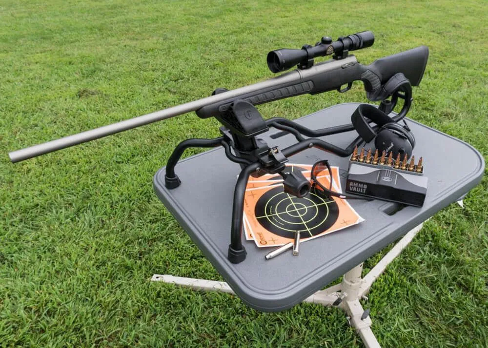 El banco de tiro Caldwell Stinger ofrece estabilidad y comodidad para tiradores en el campo o en el rango. Construcción duradera de acero y aluminio, diseño ergonómico y ajustable, bandeja para accesorios y patas ajustables para terrenos diversos.