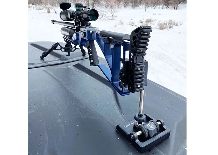 Los ajustes se realizan rápidamente con ruedas de ajuste de funcionamiento suave que permiten microajustes precisos sin necesidad de aflojar las perillas. El monopié Saber Tactical Bench cuenta con tornillos de acero inoxidable para ajustes verticales y horizontales. El pie y la carcasa están hechos de aluminio 6061 T6, que es a la vez ligero y resistente.