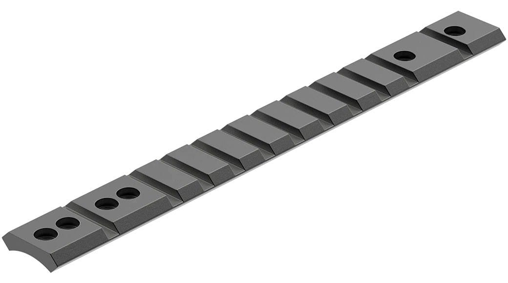 Base de aluminio estilo Weaver con un diseño mejorado del sistema más que probado de bulón cruzado para dar a las anillas más contacto con la base, añadir estabilidad y facilitar la instalación.