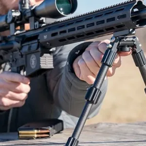 El bípode Accumax Premium M-LOK/KeyMod de Caldwell proporciona una plataforma de disparo estable y se adapta muy bien a cualquier parte delantera que esté equipada con un riel M-LOK o KeyMod. Este bípode es plegable y tiene patas de carbono ligeras. Las patas son ajustables en longitud con la tecnología Twist-Lock y están equipadas con pies de goma.