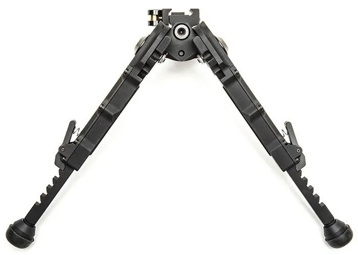 El bípode Accu-Tac BR-4 G2 está hecho de aluminio billet ligero y resistente y se puede fijar al riel de accesorios de su rifle con un soporte de riel de liberación rápida. No se necesitan herramientas. Las patas son ajustables en longitud (5 pasos con retracción automática) y se pueden ajustar de forma independiente en cinco posiciones: