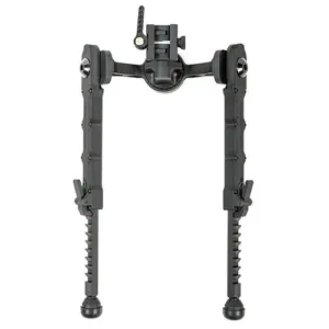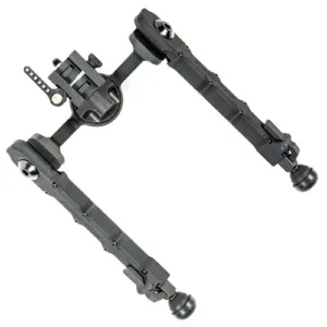 Este bípode está construido con una aleación de aluminio 6061 T6 liviana pero resistente con un acabado en un revestimiento anodizado negro mate.