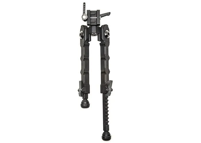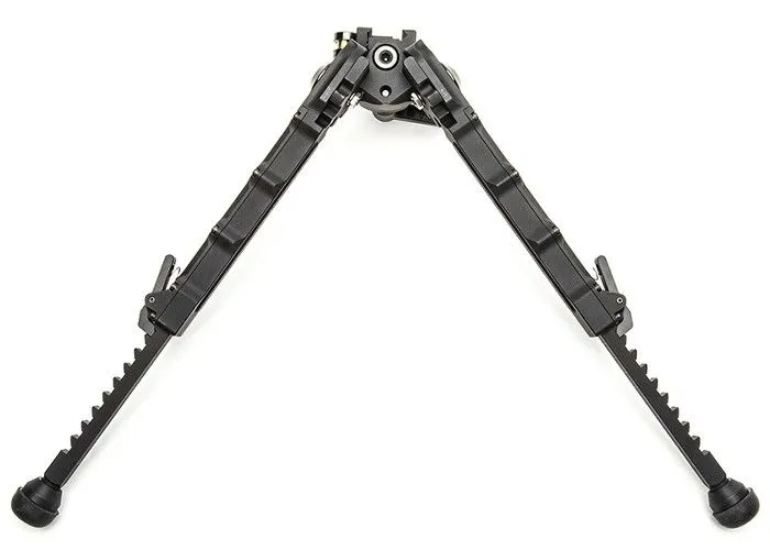 El bípode Accu-Tac SR-5 G2 está hecho de aluminio billet ligero y resistente y se puede fijar al riel de accesorios de su rifle con un soporte de riel de liberación rápida. No se necesitan herramientas. Las patas son ajustables en longitud (5 pasos con retracción automática) y se pueden ajustar de forma independiente en cinco posiciones: