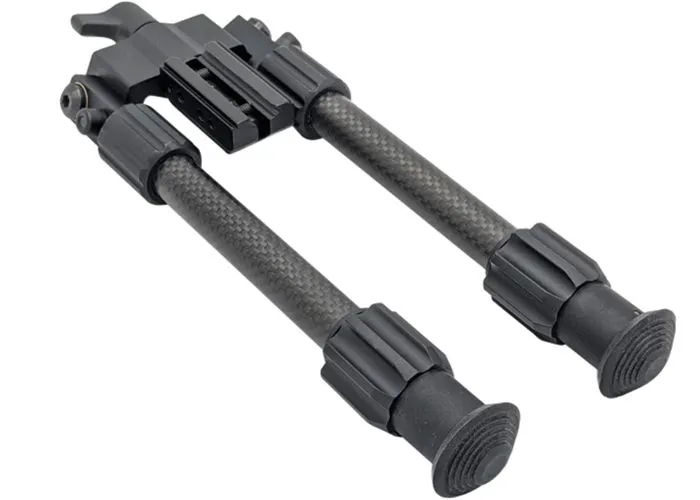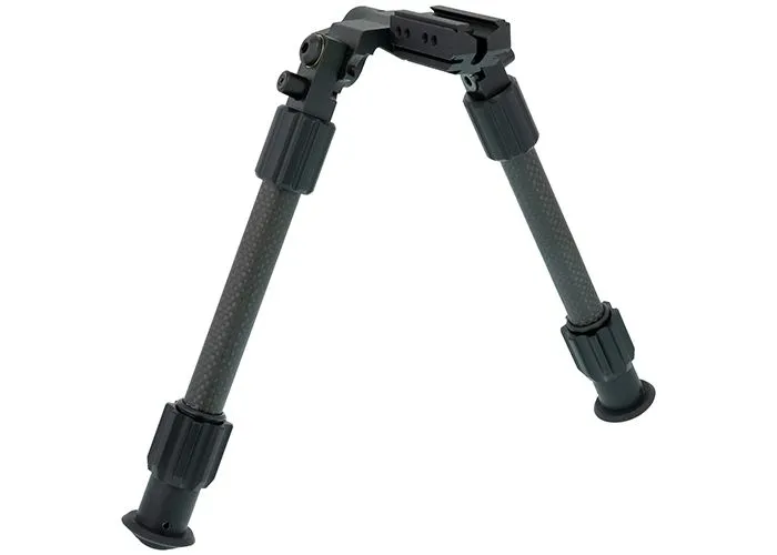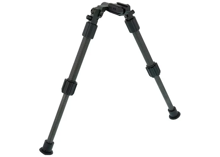 El bípode de fibra de carbono AirForce se puede montar en rieles de cola de milano de 11 mm y plegar en cinco ángulos diferentes. Sus patas son de fibra de carbono, lo que reduce el peso total del bípode, y son ajustables de 21 a 32 centímetros.