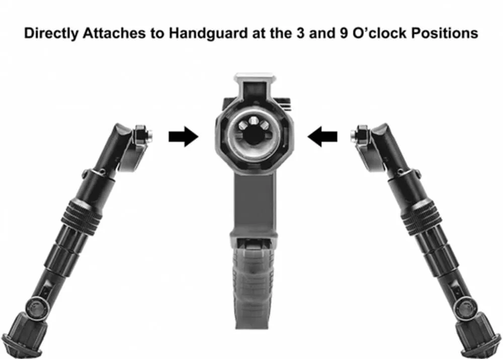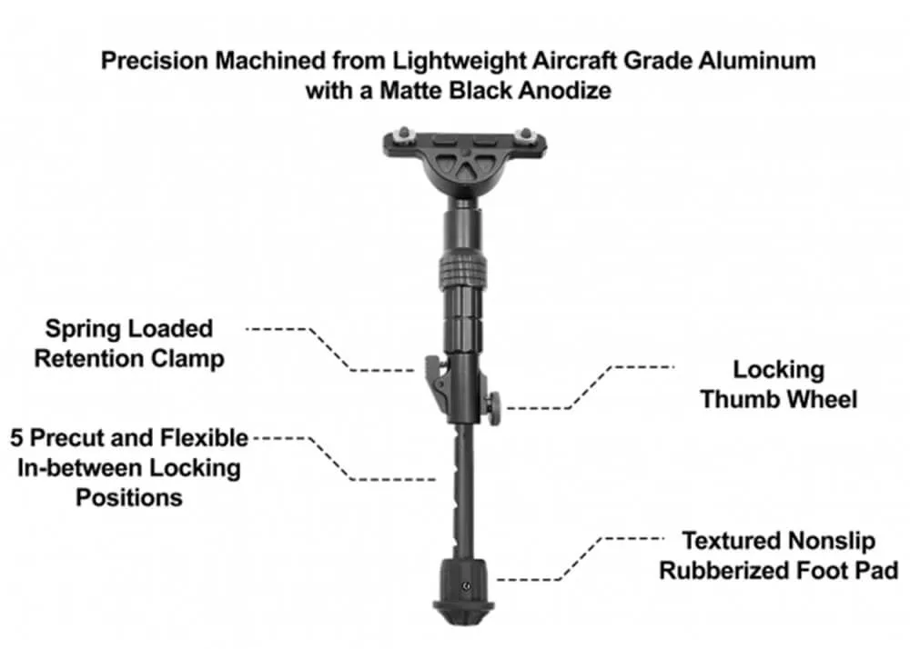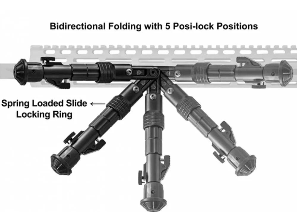 Este bípode también tiene patas de bípode bidireccionales ajustables de 5 posiciones. Viene con herramientas para el montaje.