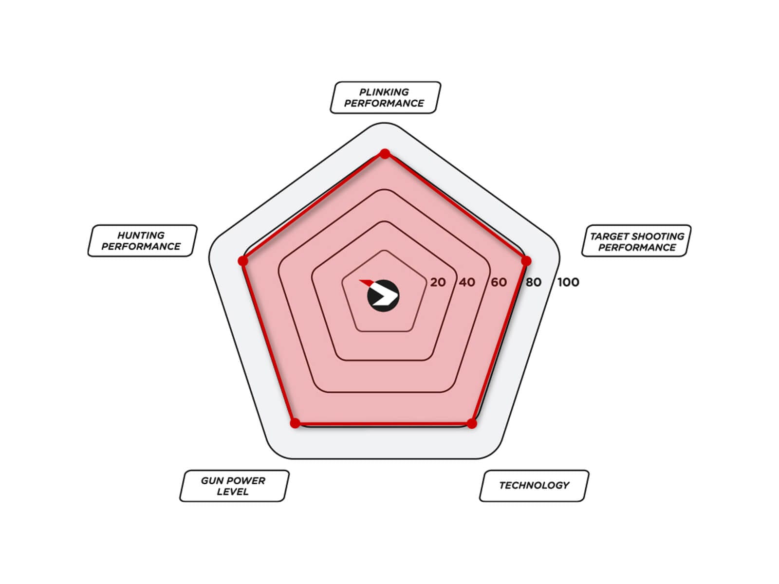 386 metros por segundo en Cal. 4.5 – 268 metros por segundo en Cal 5.5