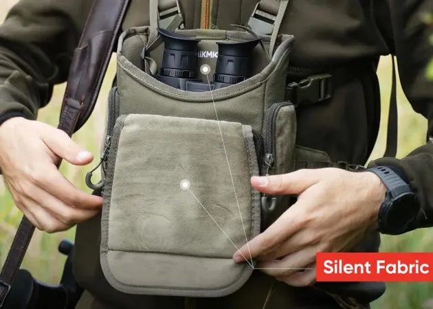 Esta bolsa de transporte con arnés binocular HikMicro hace que llevar un par de binoculares sea mucho más cómodo. El cuello se libera de la presión y los prismáticos se mantienen firmemente en su lugar, gracias al arnés con correas ajustables y hebillas de liberación lateral. Se acabaron los temblores y los golpes cuando corres, te agachas o te arrastras.