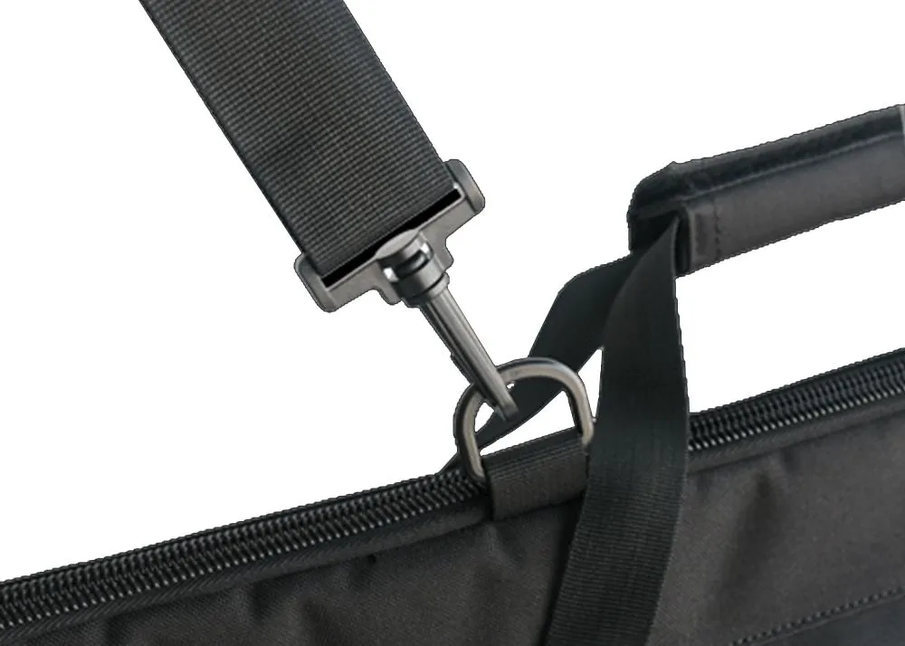 Además de los cierres de doble cremallera y un compartimento adicional para objetos pequeños, Snowpeak equipó el estuche blando para rifle GB02 96×28 con una correa para el hombro extraíble y ajustable, dos bucles resistentes que se pueden asegurar con velcro y tiras de velcro. adentro para asegurar aún más el rifle.