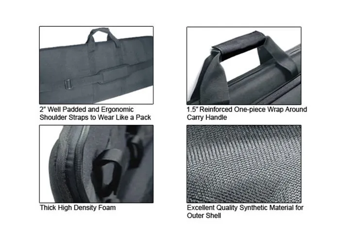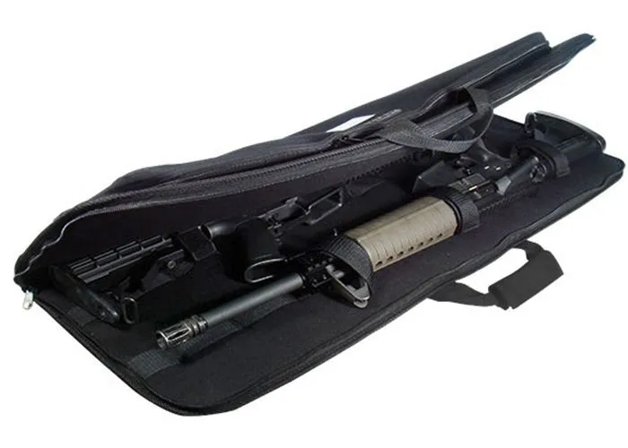 Esta bolsa para rifle Homeland Security Covert 86×30 de UTG ofrece una construcción robusta para transportar su rifle y accesorios.