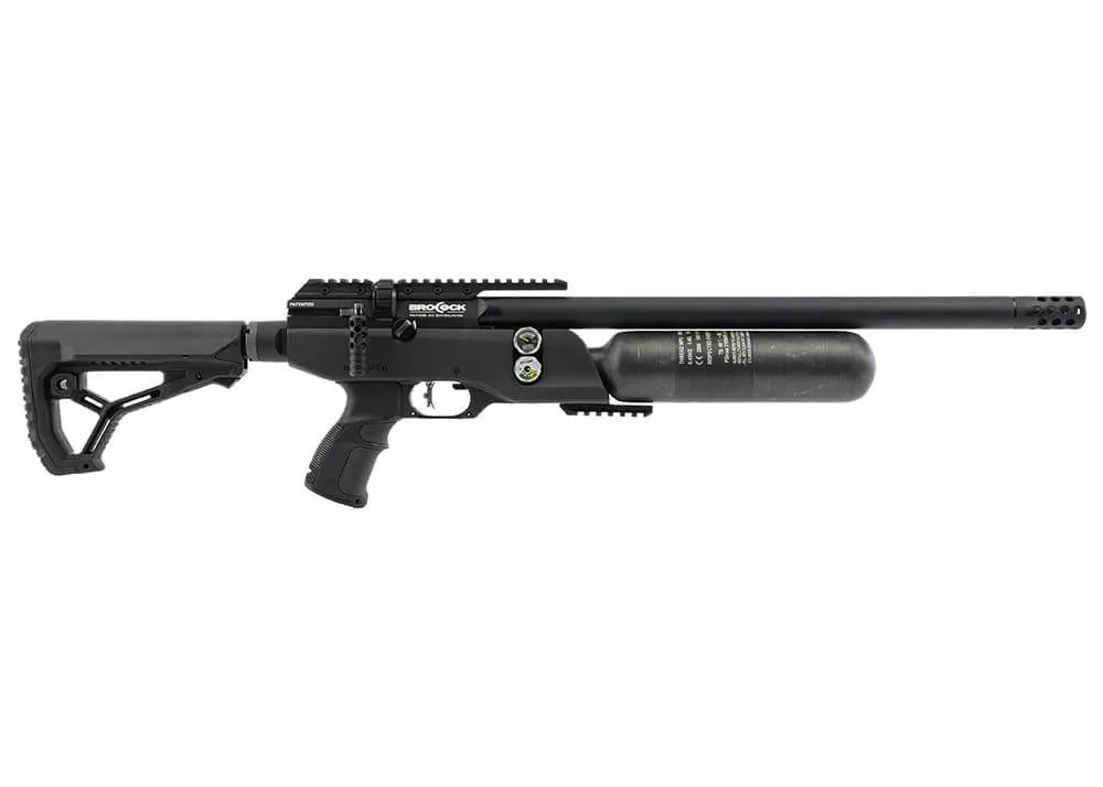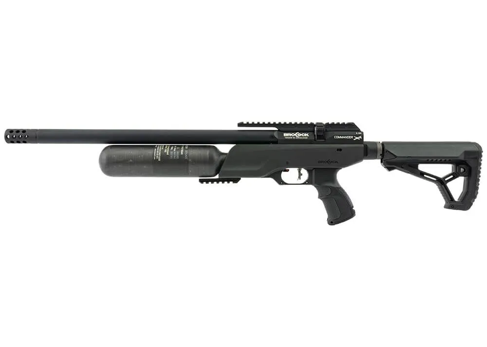 Esta carabina de aire comprimido Commander XR es una variante de la serie XR de BRK, que anteriormente se conocía como Brocock. Está equipado con una culata fija estilo AR con longitud de tiro ajustable, rieles Weaver/Picatinny en la parte superior e inferior, un cilindro de aire de carbono de 480 cc y está propulsado por el sistema XR.