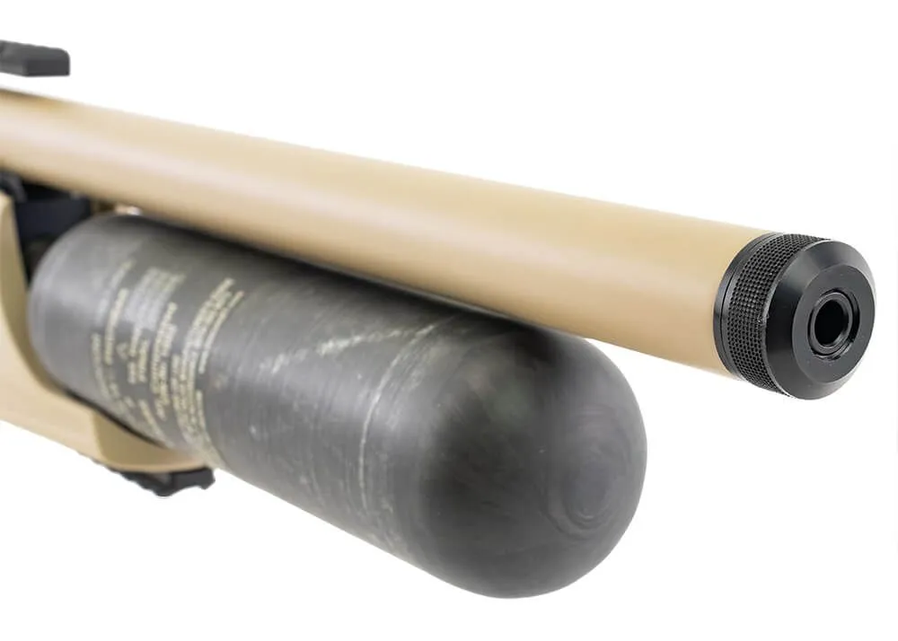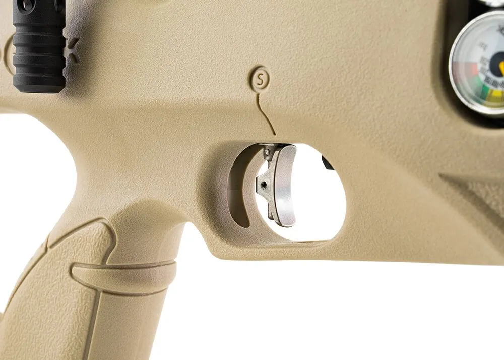 de aire• Culata de polímero de color arena, con orificio para el pulgar y carrillera y cantonera