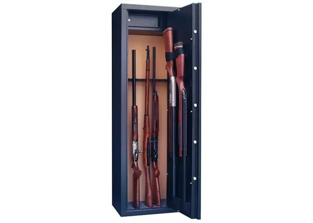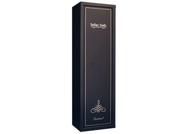 Dentro de la caja fuerte para armas Infac Sentinel SD10 hay espacio para 10 rifles, de los cuales dos se pueden guardar dentro de la puerta. Un compartimento con su propia cerradura puede contener documentos, pistolas o municiones. En la parte inferior del compartimento hay un agujero para guardar un rifle largo.