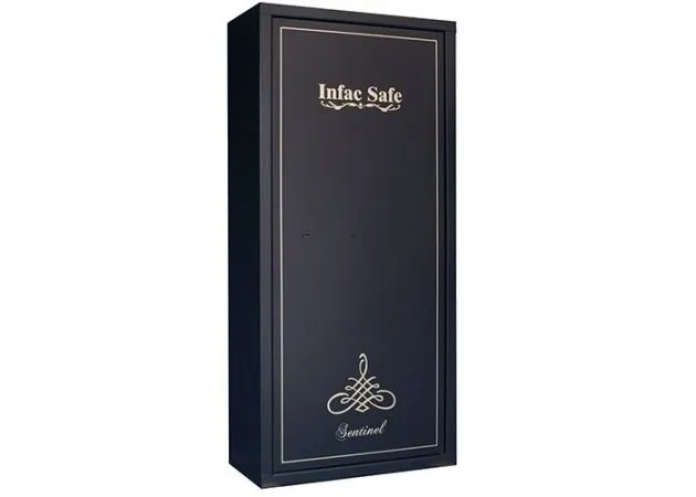 Dentro de la caja fuerte para armas Infac Sentinel SD14 hay espacio para 10 rifles, de los cuales tres se pueden guardar dentro de la puerta. Un compartimento con su propia cerradura puede contener documentos, pistolas o municiones. En la parte inferior del compartimento hay un agujero para guardar un rifle largo.