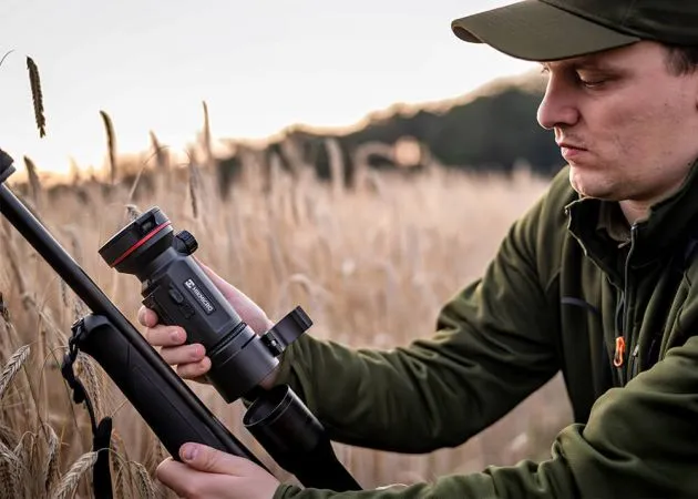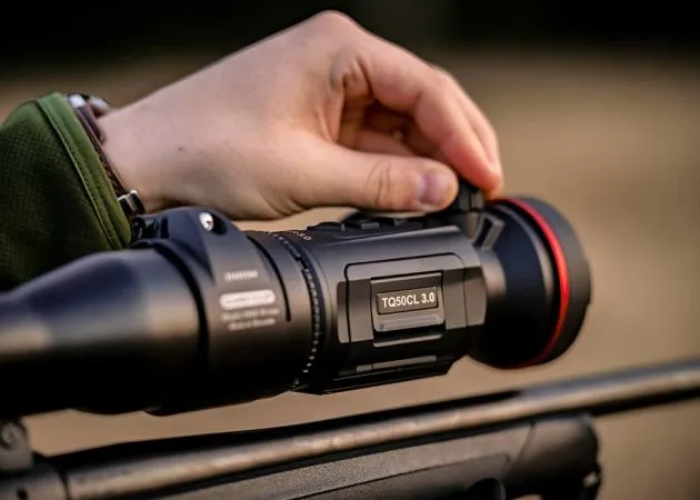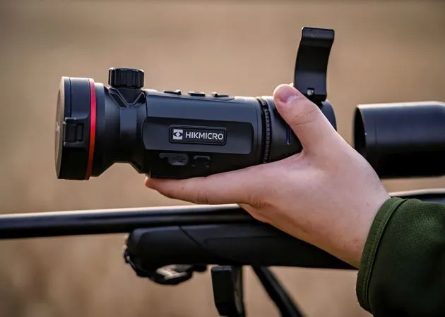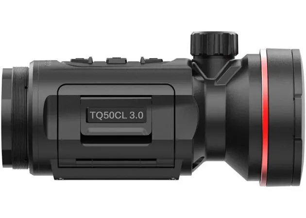 El objetivo tiene un diámetro de 50 mm y la cámara termográfica HikMicro Thunder 3.0 Clip-On TQ50CL (sin retícula) tiene un campo de visión de 15,4 x 12,3 metros a una distancia de 100 metros. El sensor termográfico tiene un alcance de 2600 metros, por lo que podrá observar desde una gran distancia.