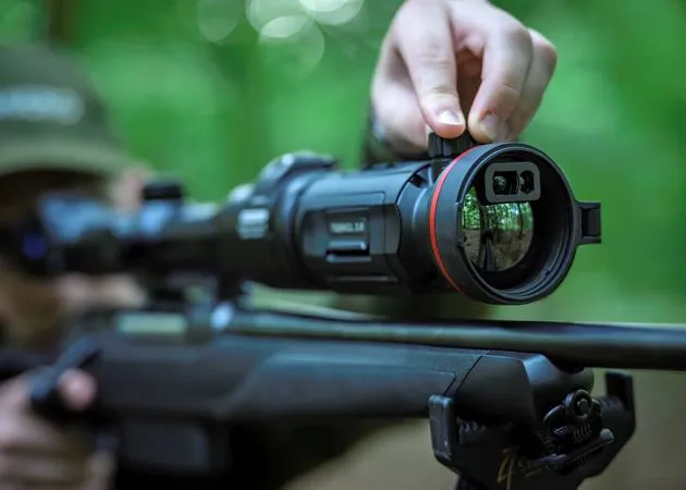 Esta cámara termográfica también tiene una calculadora balística integrada y un telémetro láser que puede medir distancias de hasta 1000 metros. La distancia medida se introduce directamente en la calculadora, que determina el punto de impacto correcto, lo que aumenta enormemente la precisión.
