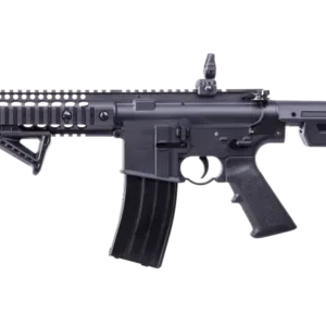 CARACTERÍSTICAS – Carabina CO₂ Tactical con acción semi-automática – Cargador drop out para BB 25 tiros, compatible con perdigones de 4,5mm BB acero tradicionales – Culata ajustable en 6 posiciones – Empuñadora compatible https://youtu.be/Fvi7y-xxQxQAK y culata ajustable en 6 posiciones – Guardamanos Quad con carriles para montar accesorios – Peso y acciones reales CARABINA CO₂ CROSMAN SEMI AUTO SBR CALIBRE: 4,5mm VELOCIDAD: 130 m/sg