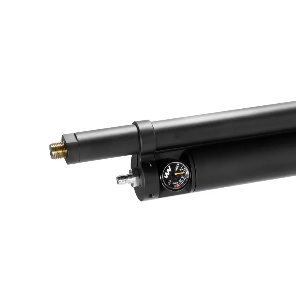 El MA2 admite varios calibres, incluidos .22, .25 y .30, cada uno con un rendimiento impresionante. Con un cilindro de aire de 196 cc y una presión máxima de llenado de 250 bar, el arma ofrece hasta 100 disparos por recarga para .22, 60 disparos para .25 y 24 disparos para .30. El cañón está estrangulado, amartillado y cubierto, lo que garantiza un disparo siempre preciso. El riel Picatinny integrado facilita el montaje de accesorios como miras y bípodes.