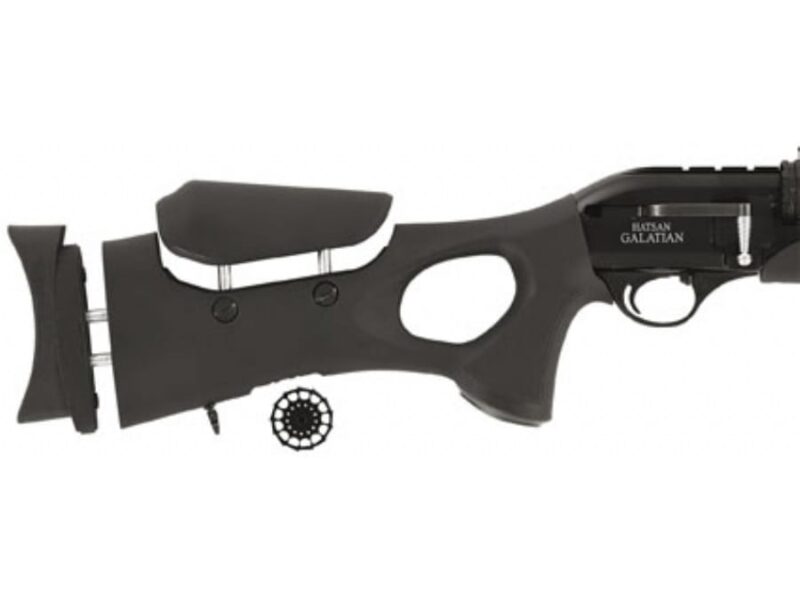 • Culata ergonómica regulable ambidiestra en polymero negro con agujero y picados en empuñadura y guardamanos para un mejor agarre.