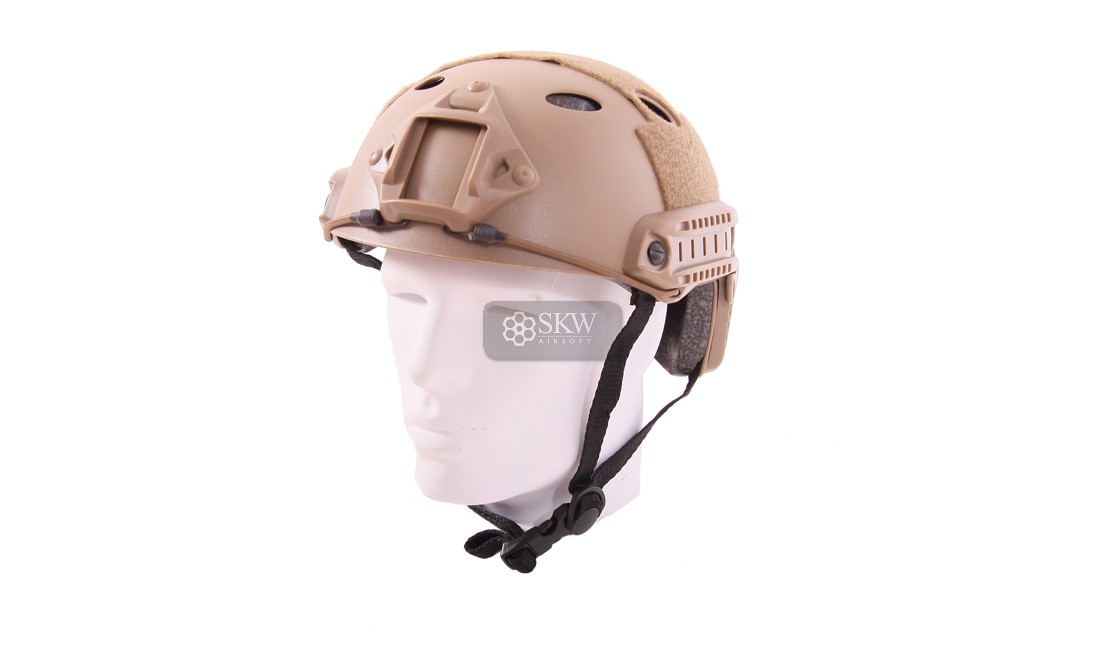 Casco FAST PJ Tan Emerson: Casco táctico en color tan, ligero y ajustable, ideal para proporcionar protección y comodidad en misiones y actividades al aire libre.