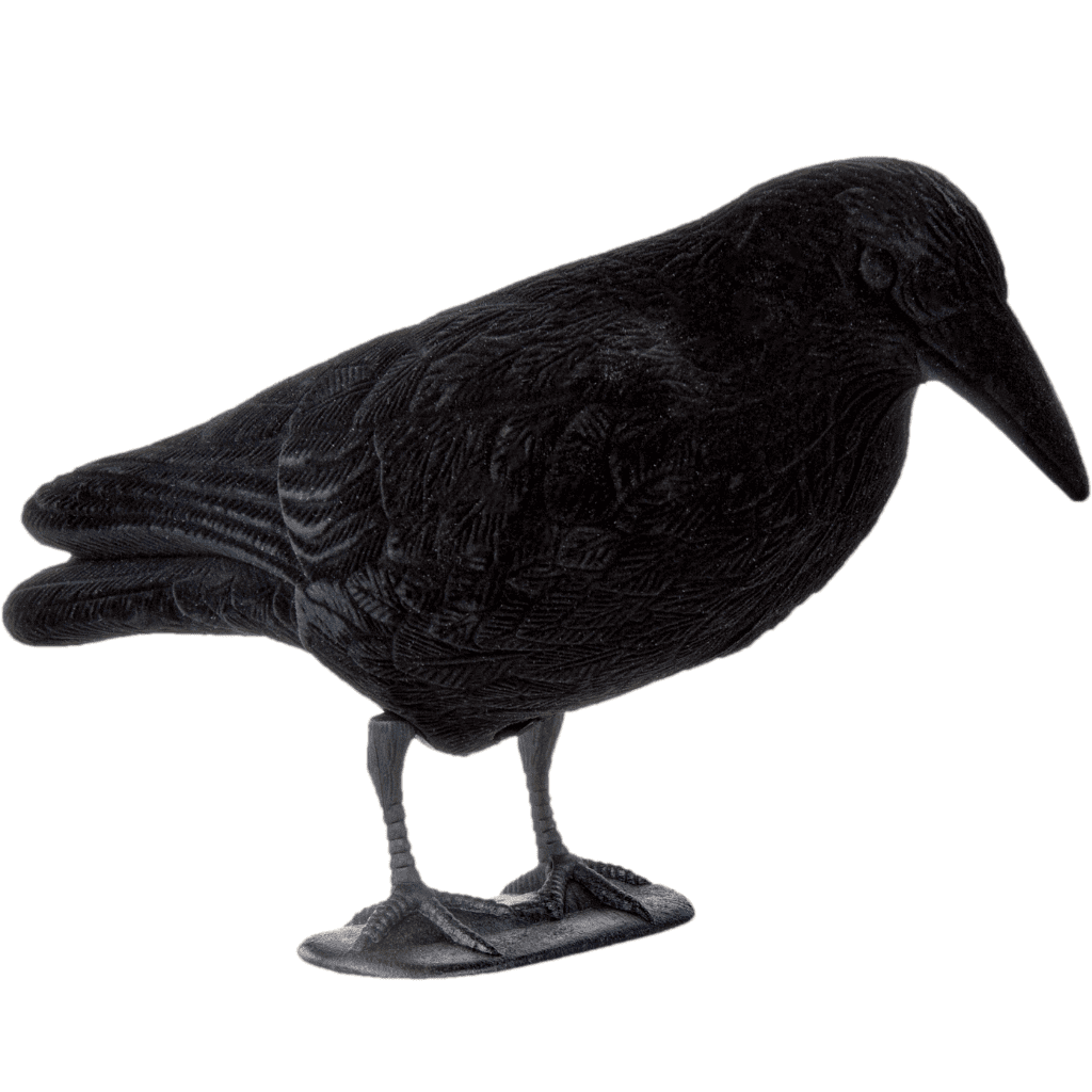 Cuerpo completo para la caza exitosa de cuervos,graajs y urracas. El éxito de la caza aumenta significativamente con estos cuervos señuelos en bandada. Gracias al fino y profundo flocado negro, los cuervos que atraen se ven mucho más realistas. Con el soporte desmontable y la punta de tierra incluida, puede diseñar la imagen de atracción de manera muy variable, lo que aumenta aún más la atracción de los cuervos. Puede quitar los soportes de algunos de los cuervos que atraen y unir la espiga del suelo a una de las 2 aberturas del cuervo en bandada según sea necesario e imitarlo cuando se alimenta, etc. Debes usar al menos 5 – 10 de los cuervos para tu señuelo, aunque aquí también, cuantos más señuelos uses, mayor será el atractivo.