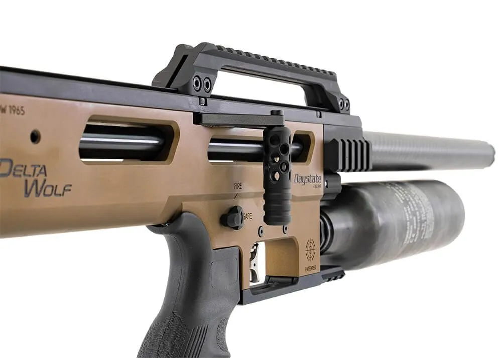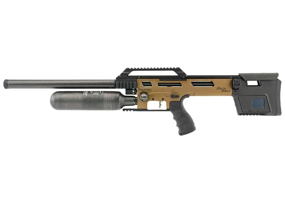 excepcional La carabina de aire comprimido Daystate Delta Wolf Bronze PCP es una joya tecnológica. La calidad es sobresaliente con un acabado adecuado y piezas de alta gama. Por ejemplo, el cañón es suministrado por el fabricante alemán de barriles Lothar Walther y el regulador proviene del especialista holandés Huma Air. Mediante el uso de una válvula de flujo rápido y un gran plenum (segunda cámara), se aprovecha al máximo los 480 cc de aire comprimido dentro de la botella de carbón.