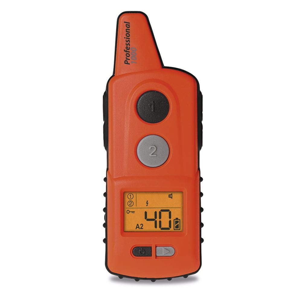 Alcance: 1000 m / Para 1 ó 2 perros. Mando y correa de color naranja.