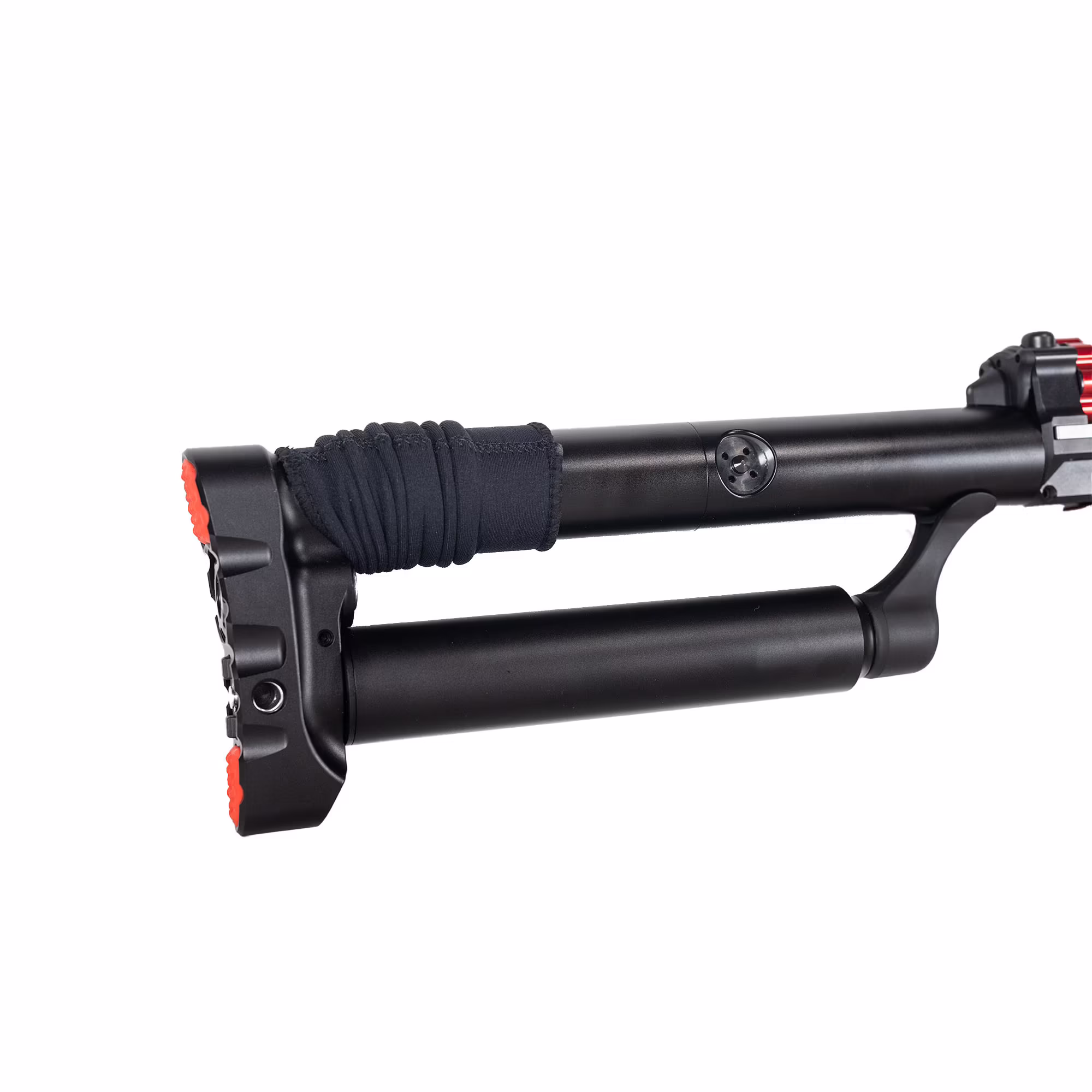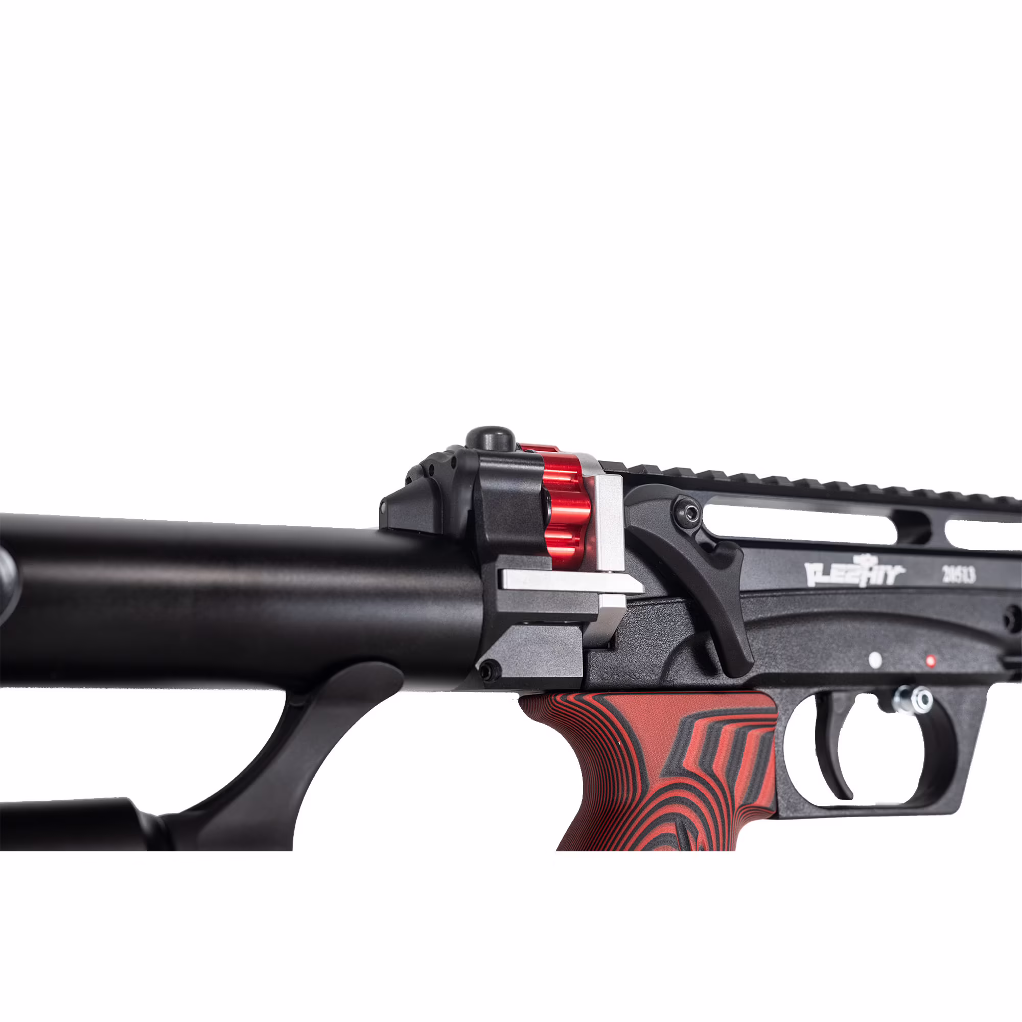 Diseñada para disparos de precisión recreativos, esta plataforma semiautomática se adapta a tiradores experimentados que requieren versatilidad y un rendimiento constante. El sistema sin martillo elimina el típico sonido de «ping» asociado con los rifles PCP convencionales. El cargador de 8 disparos permite disparos de seguimiento rápidos a través de la acción semiautomática.